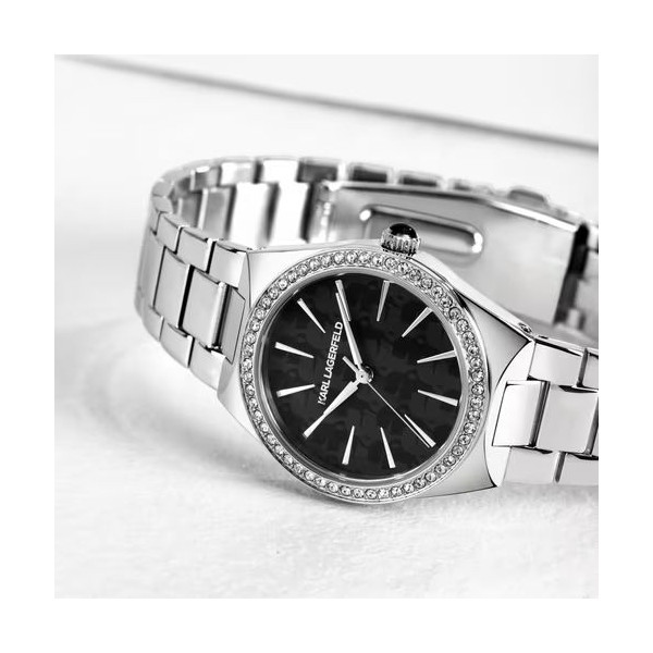OROLOGIO KARL LAGERFELD HAMBURG - R0553105511 - Genere : Donna, Materiale e finitura cassa: Acciaio, Misura cassa: 30.00mm, Spessore cassa: 7.70mm, Finitura: Lucido, Colore cassa: Silver, Vetro: Vetro minerale, Materiale cinturino: Acciaio, Colore cinturino: Silver, Chiusura: Fibbia deployante con pulsanti, Movimento: Quarzo, Swiss made: No, Water resistant: 5 atm, Garanzia: Ufficiale 2 anni Karl Lagerfeld, Confezione: Originale Karl Lagerfeld