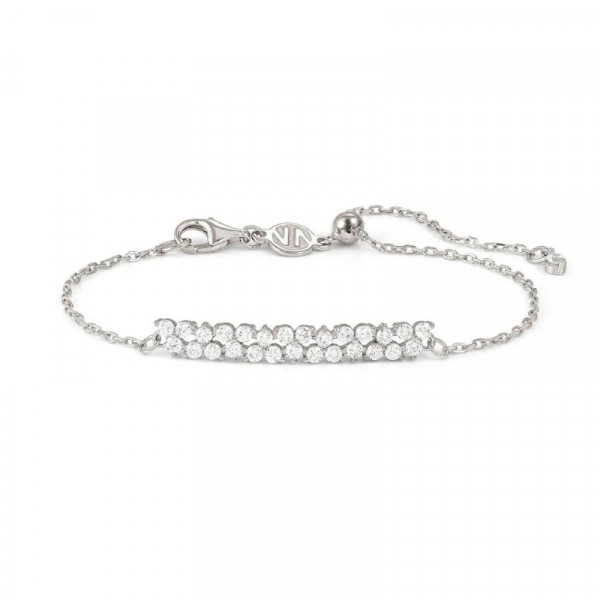 Bracciale catena della collezione Nomination Life Bouquet da donna. Colore: argento. Il gioiello è realizzato in argento 925‰ rodiato bianco ed è impreziosito da due file unite di brillanti zirconi bianchi. Dimensione decorazione: 3,6 cm x 0,45 cm. Chiusura a moschettone con sfera scorrevole per regolare la lunghezza.