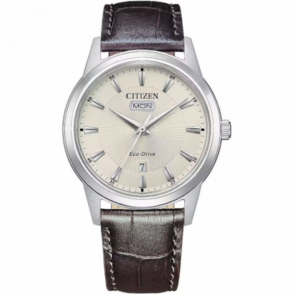 Orologio uomo citizen, aw0100-19a, collezione classic, movimento eco-drive, solo tempo, cassa in acciaio 40mm, quadrante con datario, cinturino in pelle, resistenza all’acqua 5atm