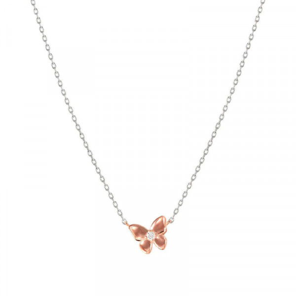 Collana girocollo della collezione Nomination Sweet Madame da donna. Colore: argento e oro rosa. Il gioiello è realizzato in argento 925‰ rodiato e oro rosa con ciondolo a forma di farfalla impreziosita da un punto luce cubic zirconia bianchi. Dimensioni farfalla: 1,1 cm x 0,95 cm. Lunghezza regolabile da 38 cm a 44 cm con chiusura a moschettone.