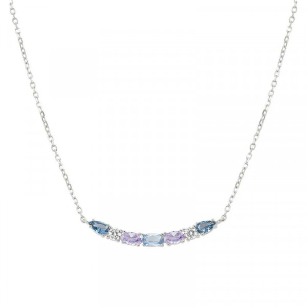 Collana girocollo della collezione Nomination Colour Wave da donna. Colore: multicolor. Il gioiello è in argento 925‰ rodiato bianco impreziosito da zirconi di colore blu, bianco, azzurro e viola di diverso taglio. Dimensione decorazione: 3 x 0,3 cm. La lunghezza è regolabile da 38 cm a 44 cm con chiusura a moschettone.