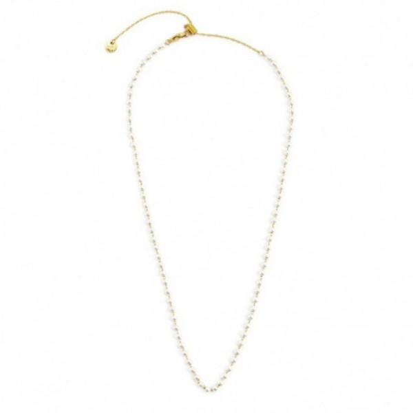 Collana in acciaio con oro pvd con catena di perle con diametro 3.30 mm. Lunghezza totale 50 cm regolabile da 50 cm a 40 cm tramite cursore. Marlù logo tag presente all' estremità. Collezione: BEW06 Materiali: acciaio con pvd oro, perle