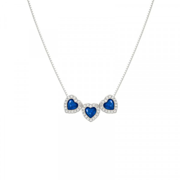 Collana girocollo della collezione Nomination All My Love da donna. Colore: argento e blu. Il gioiello è realizzato in argento 925‰ rodiato con tre ciondoli impreziositi da zirconi bianchi e blu a forma di cuore. Lunghezza regolabile da 38 cm a 43 cm con chiusura a moschettone.