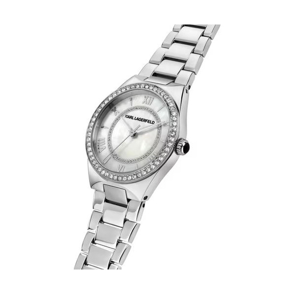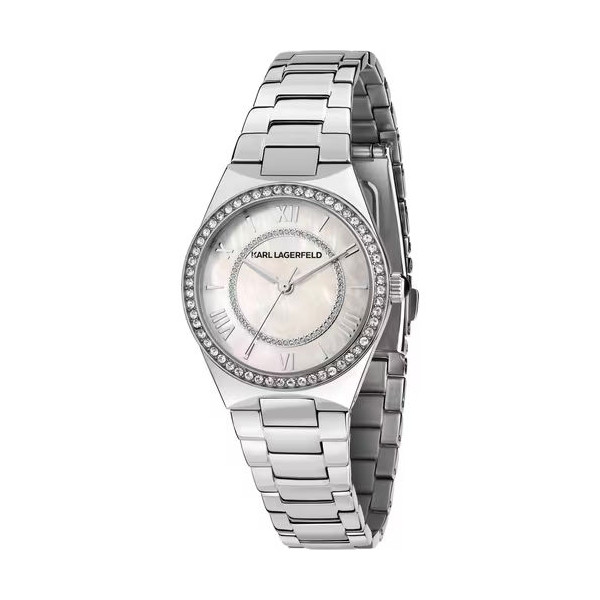 OROLOGIO KARL LAGERFELD HAMBURG - R0553105506 - Genere : Donna, Materiale e finitura cassa: Acciaio, Misura cassa: 30.00mm, Spessore cassa: 7.70mm, Finitura: Lucido, Colore cassa: Silver, Vetro: Vetro minerale, Materiale cinturino: Acciaio, Colore cinturino: Silver, Chiusura: Fibbia deployante con pulsanti, Movimento: Quarzo, Swiss made: No, Water resistant: 5 atm, Garanzia: Ufficiale 2 anni Karl Lagerfeld, Confezione: Originale Karl Lagerfeld