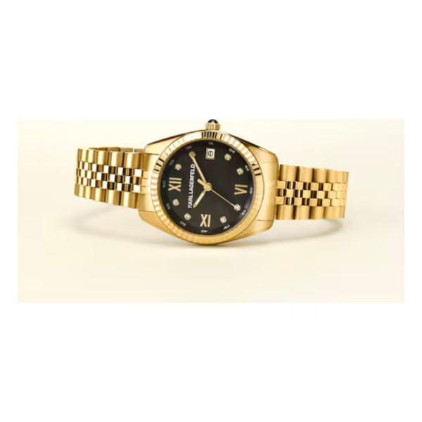 OROLOGIO KARL LAGERFELD TIMELESS CODE - R0553108503 - Genere : Donna, Materiale e finitura cassa: Acciaio, Misura cassa: 32.00mm, Spessore cassa: 9.00mm, Finitura: Lucido, Colore cassa: Gold, Vetro: Vetro minerale, Materiale cinturino: Acciaio, Colore cinturino: Oro, Chiusura: Fibbia deployante con pulsanti, Movimento: Quarzo, Swiss made: No, Water resistant: 5 atm, Garanzia: Ufficiale 2 anni Karl Lagerfeld, Confezione: Originale Karl Lagerfeld